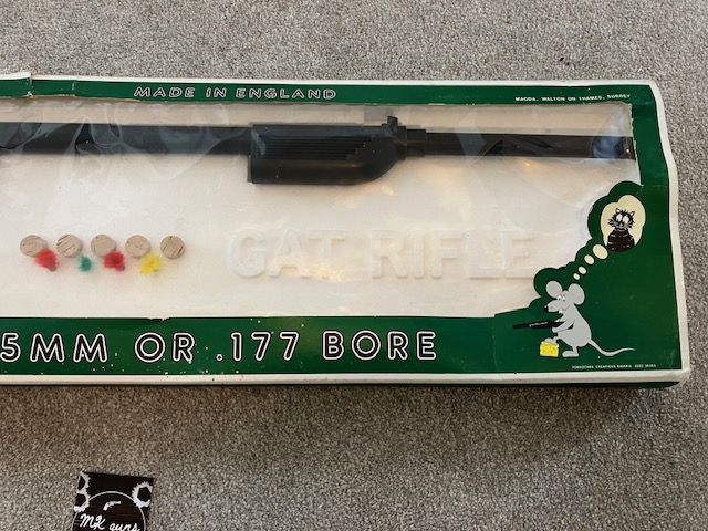 Today, vintage Gat Rifles, particularly those manufactured and still in boxes are highly sought after by collectors. Their simple yet robust design, combined with their historical significance, makes them prized possessions for airgun enthusiasts worldwide. Owning a vintage Gat Rifle is more than just acquiring a functional airgun; it’s about connecting with a bygone era and experiencing a piece of British airgun history. My example had been in the Loft for 40 years, what a find!