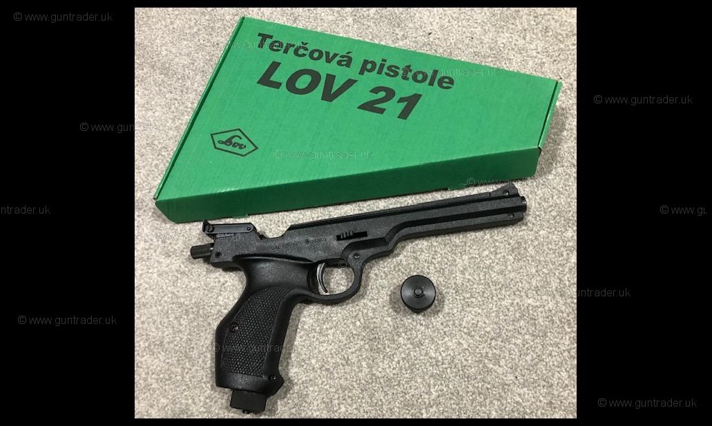 The LOV 21 is a 4.5 mm (.177) calibre, single shot target pistol manufactured in the Czech Republic. It is powered by a 12 gram CO2 capsule inserted into the handle, giving 50 to 60 shots. The body is made from a hard durable plastic. Ambidextrous and suits all hand sizes. The rear sight is adjustable for right/left and high/low sighting. It comes complete with 2 CO2 Piercer.